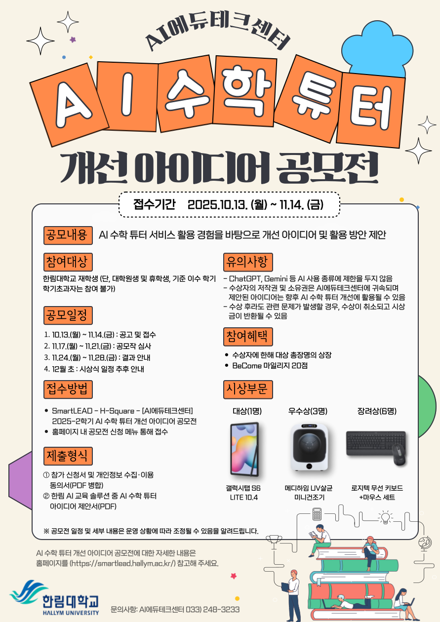 2025학년도 2학기 AI 수학 튜터 개선 아이디이어 공모전을 개최하오니,