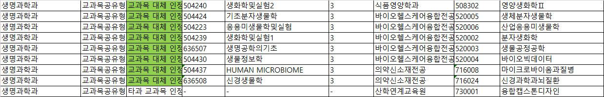 생명과학과 코드쉐어링 현황을 알려드립니다.