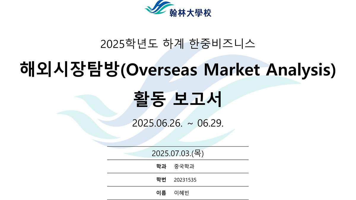 2025 한중비즈니스전공 다롄 및 하얼빈 해외시장분석 (이혜빈)