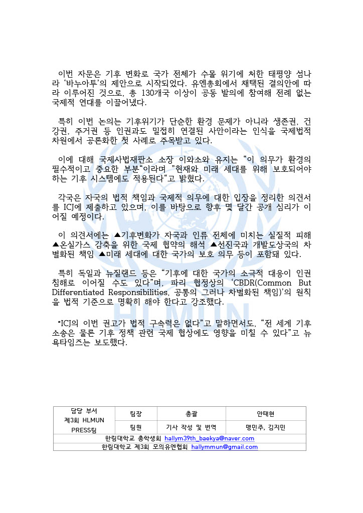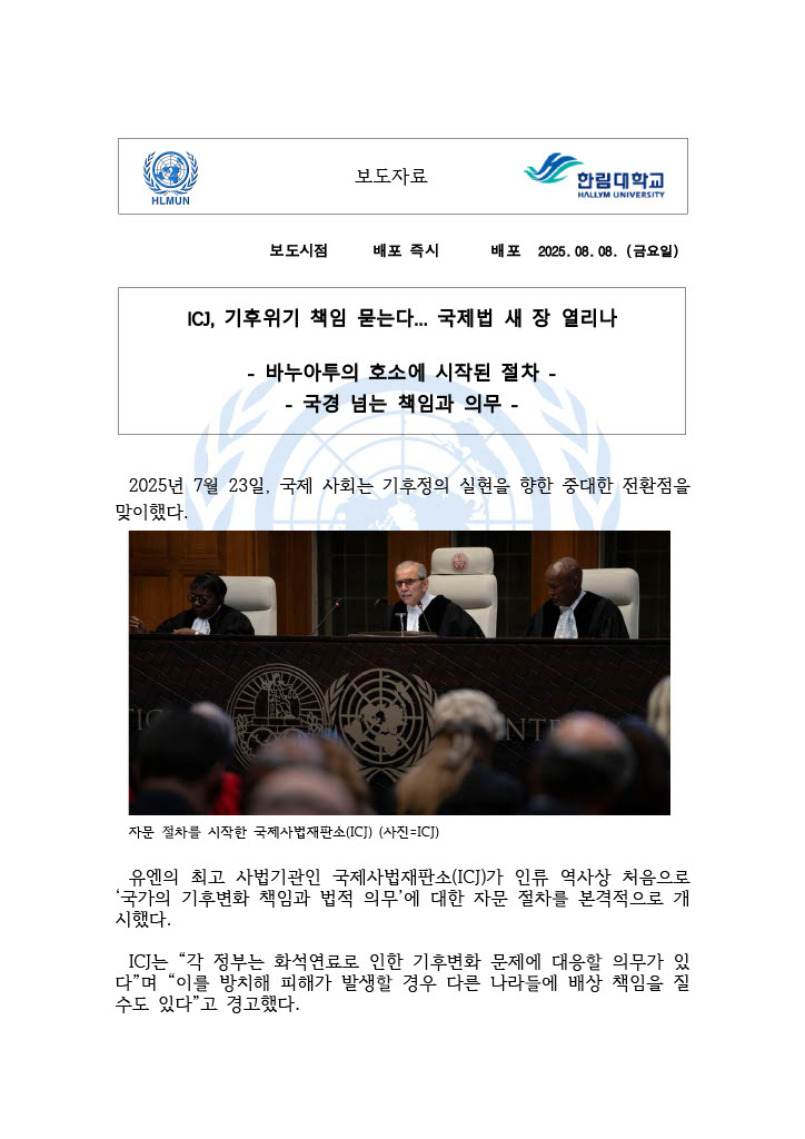 ICJ, 기후위기 책임 묻는다… 국제법 새 장 열리나