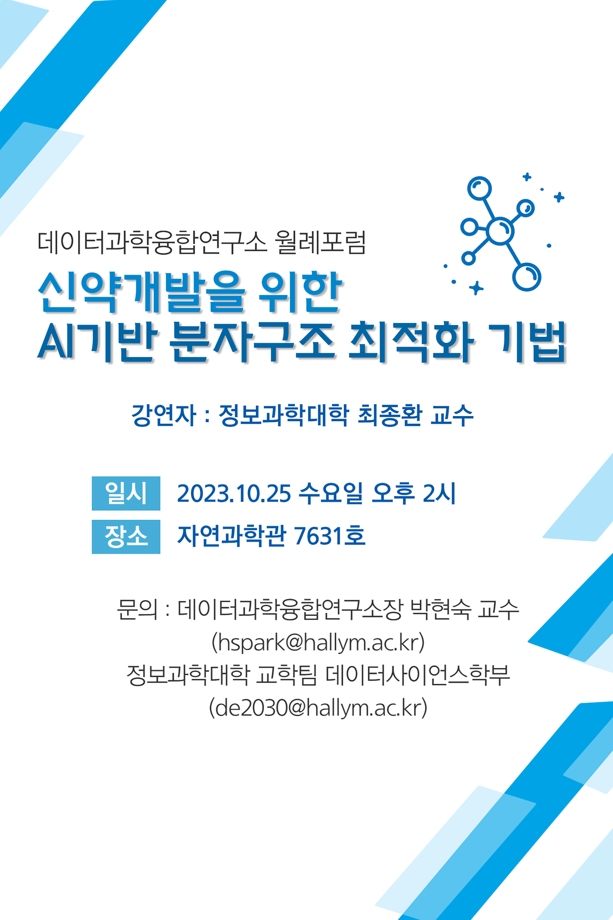 정보과학대학 최종환 교수는 '신약개발을 위한 AI기반 분자구조 최적화 기법'을 주제로 포럼을 진행했습니다.