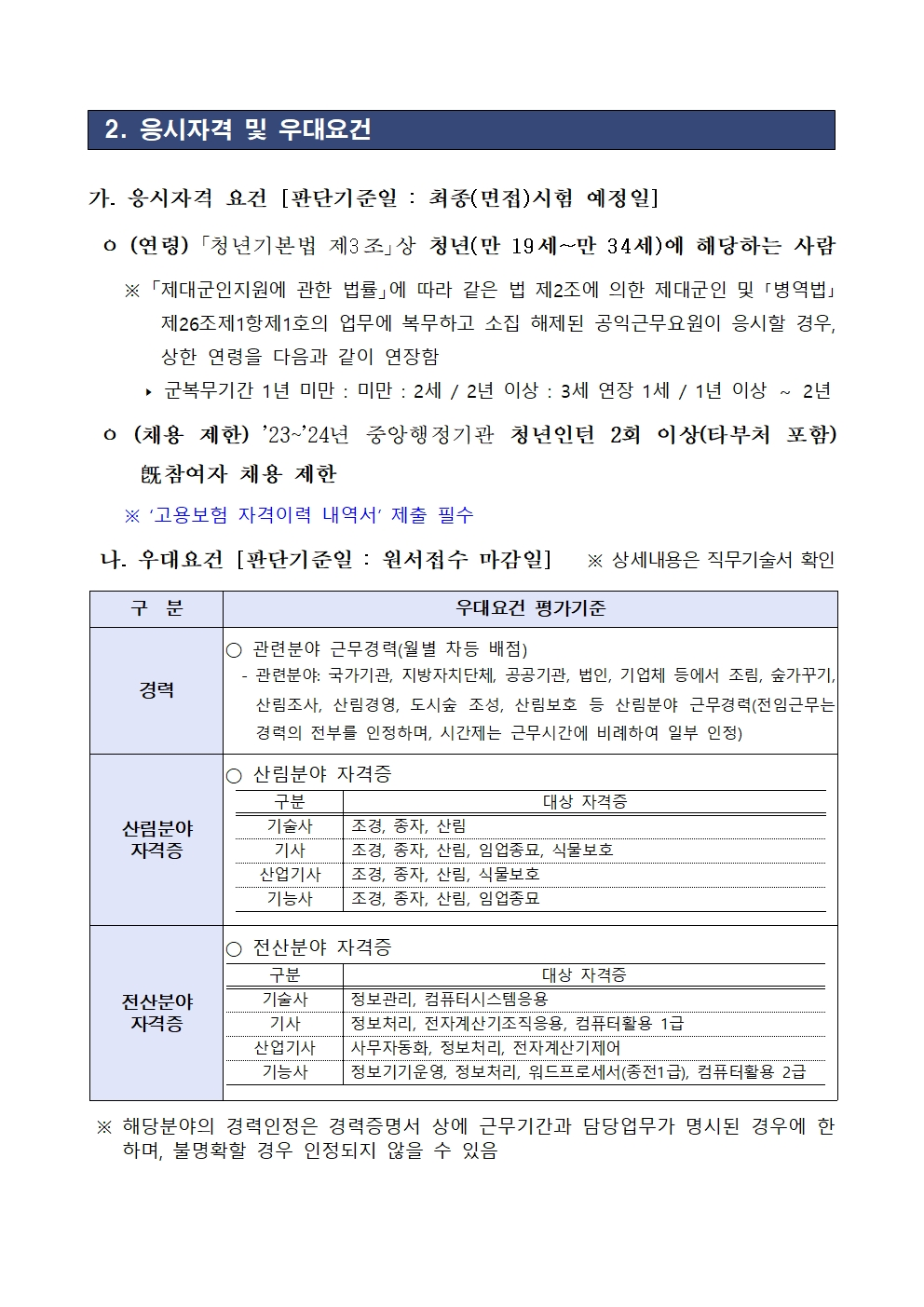 [삼척시] 2025년 산림청 청년인턴 채용 공고