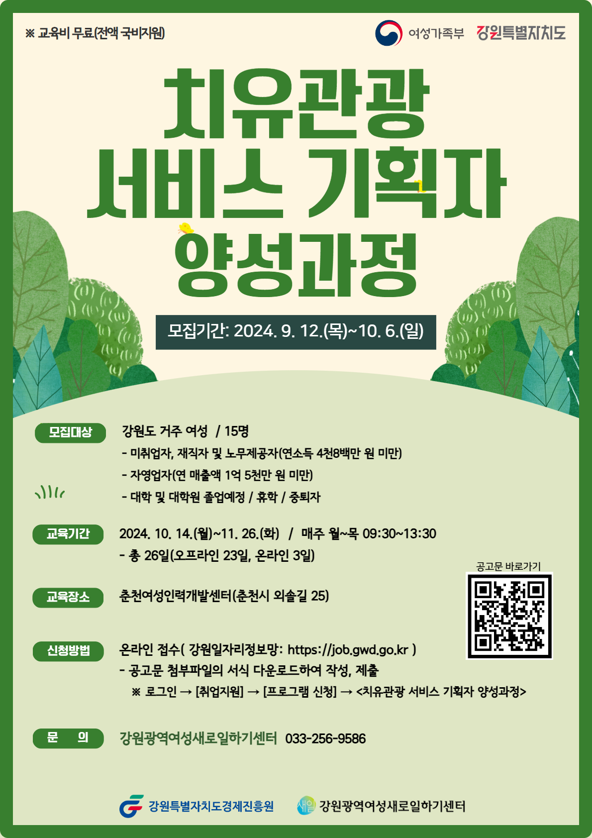 [강원특별자치도] 치유관광 서비스 기획자 양성과정