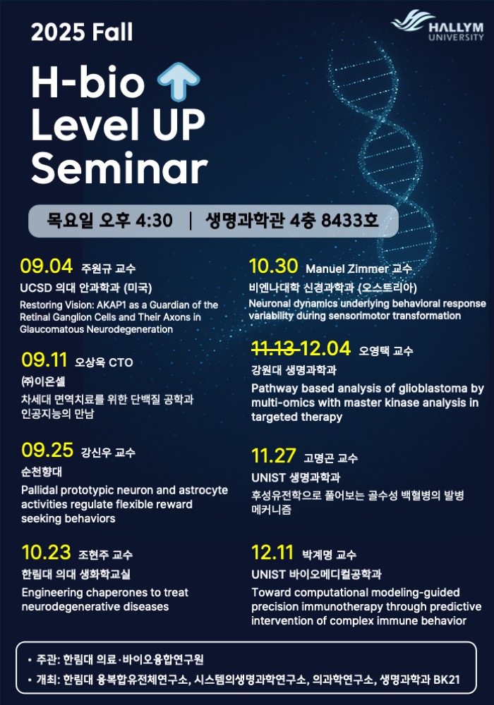 4006 행사 제5회 <H-Bio Level UP Seminar> 개최 안내 (Manuel Z 새글 의료·바이오융합연구원 첨부파일 2025-10-24 93