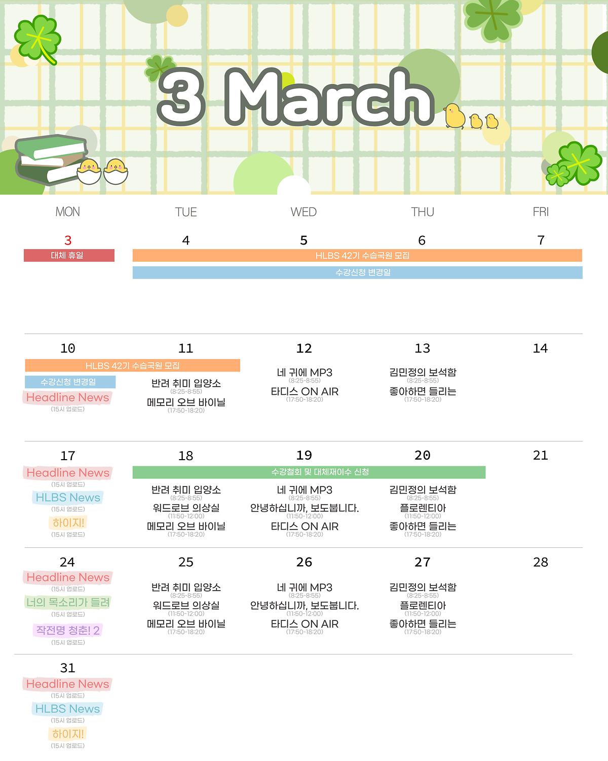 🐣HLBS 3월 편성표🐣