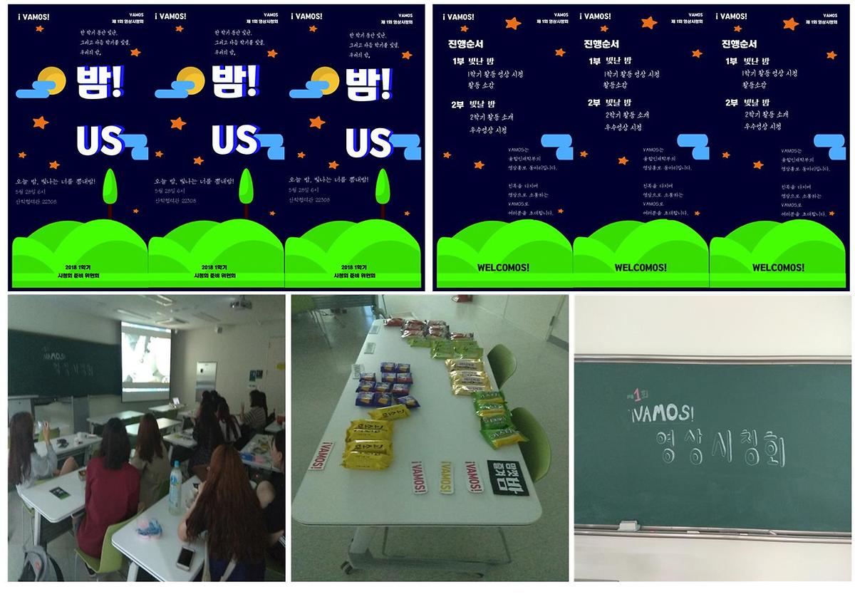 융합인재학부 영상제작동아리 'Vamos'가 제1회 영상시청회를 열었습니다. 누구나 참석가능한 행사라 Vamos 동아리원들은 행사를 널리 알리고자 포스터와 리플릿를 직접 제작하고 교내홍보를 실시하였습니다.