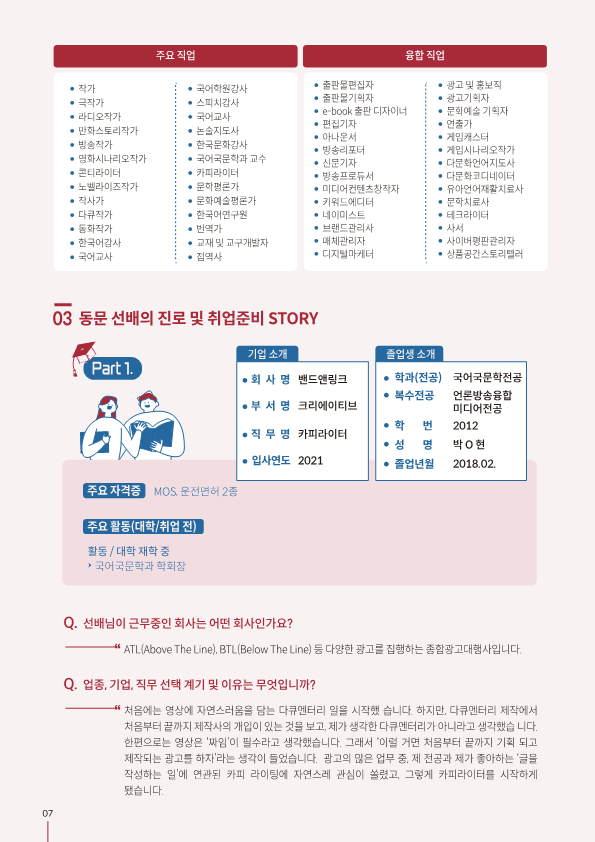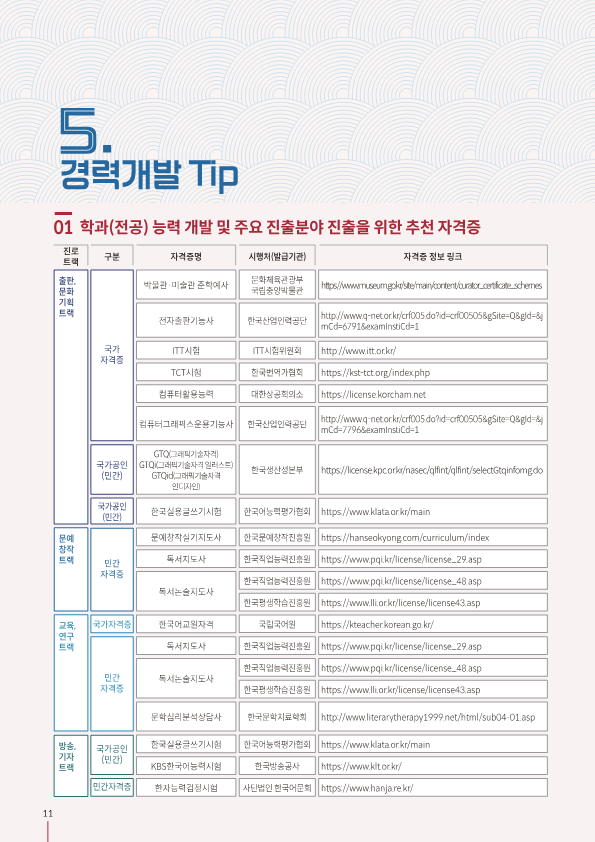 국어국문학전공 진로취업 경력개발 로드맵
