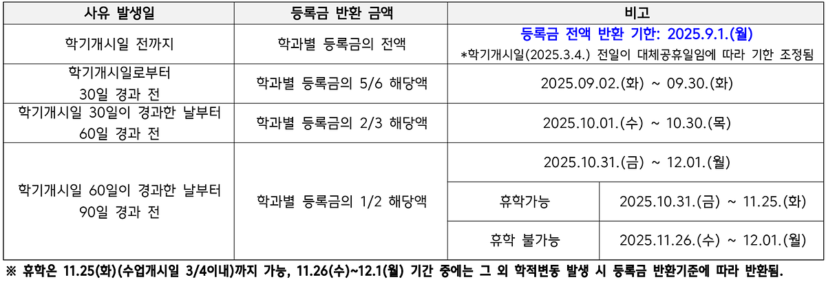 - 등록금 납부기간: 2025.8.25.(월) ~ 8.29.(금)