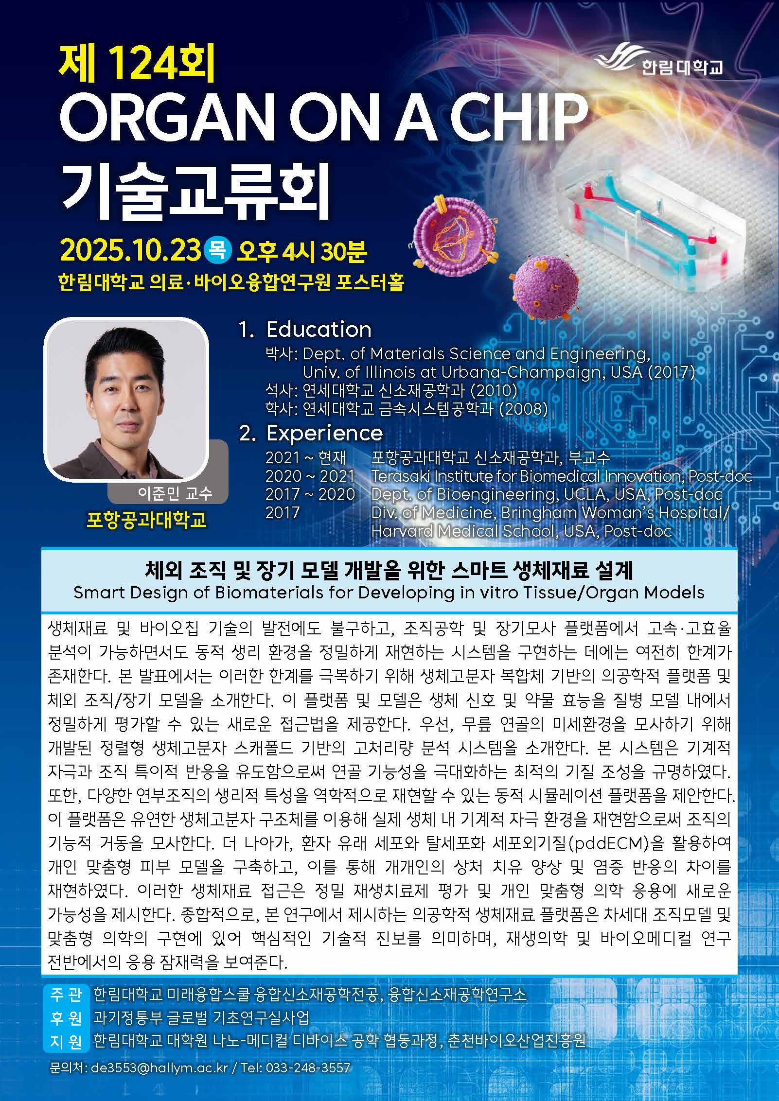 2025년 제 124회 Organ on a Chip 기술교류회를 안내드립니다.
