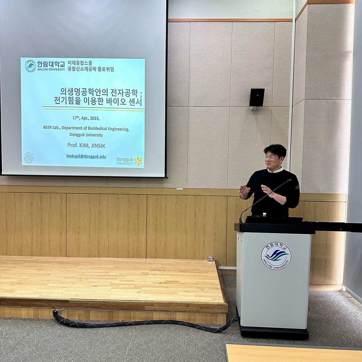 이번 기술교류회는 동국대 의생명공학과 김진식 교수를 연사로 모시고 '의생명공학 안의 전자공학; 전기 힘을 이용한 바이오센서 '를 주제로 강연이 진행되었다.