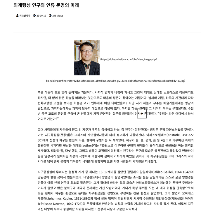 [한림패스파인더 칼럼]외계행성 연구와 인류 문명의 미래(고재현교수님)
