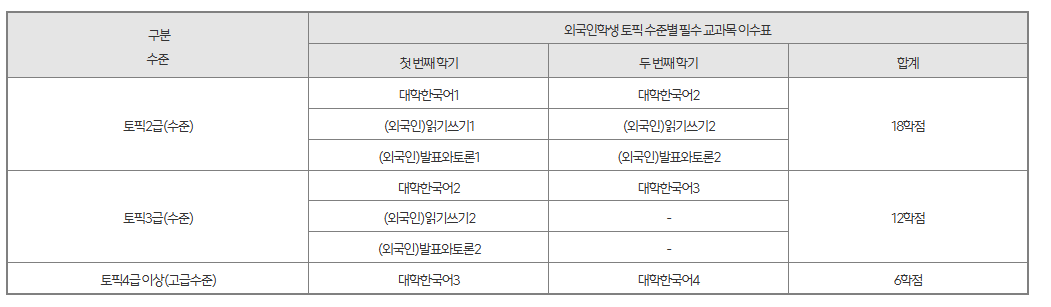 3. 외국인 입학자 교양 교과목 이수 기준