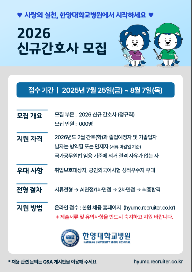 [한양대학교병원]2026 신규간호사 모집 홍보