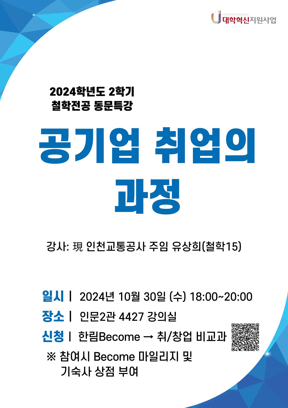 2024학년도 2학기 철학전공 동문특강 안내입니다.