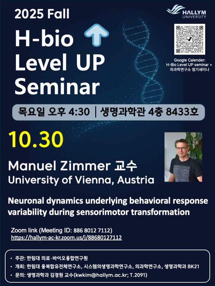 제5회 <H-Bio Level UP Seminar> 개최 안내 (Manuel Zimmer 비엔나대학교 교수)