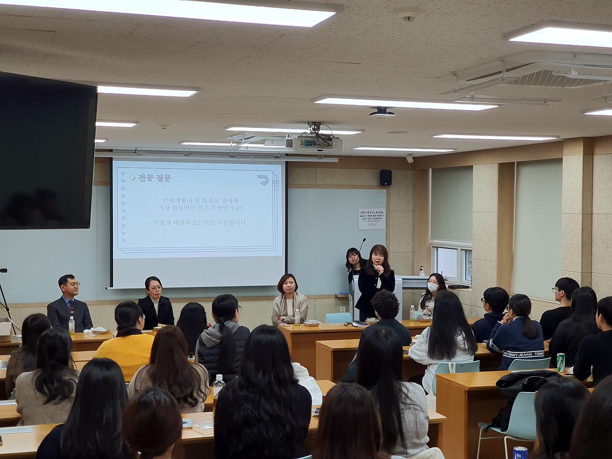 전공 교수님들과 2, 3, 4학년 학생들이 각각 한 자리에 모여 친목을 다지고 전공과 관련한 솔직한 질문과 답변을 나누는 뜻깊은 시간이었습니다.
