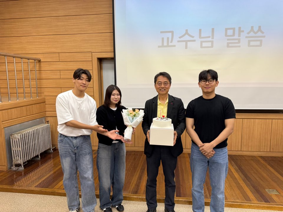 교수님께 감사한 마음을 담아 꽃다발과 케이크를 전달 드렸으며, 사회학과 학생들은 함께 '스승의 은혜' 노래를 부르기도 했습니다.