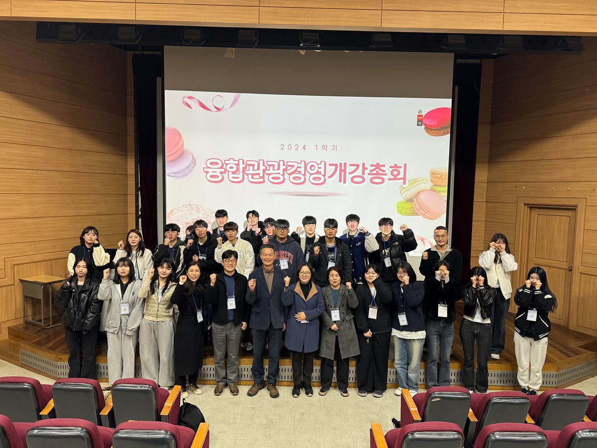 융합관광경영전공 및 전공교수진을 소개하고, 전공교수님들과 전공 재학생들 간의 친목과 유대를 다지는 의미있는 개강총회를 진행함.