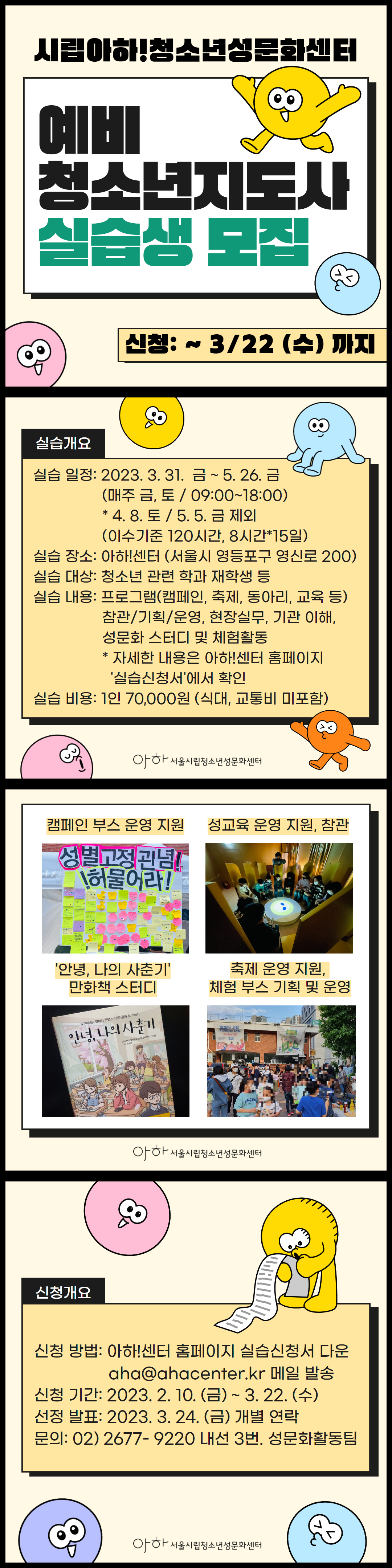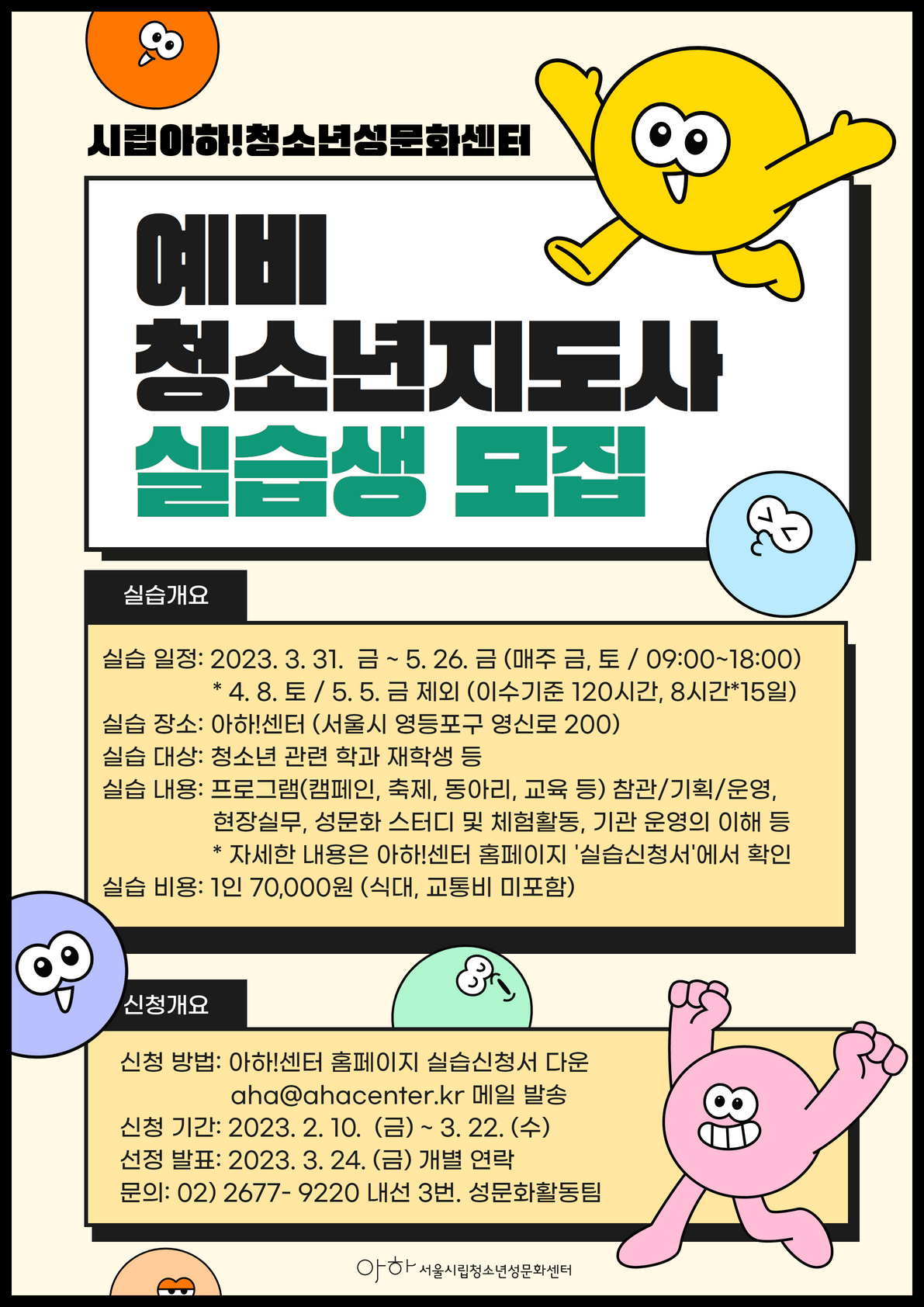 시립아하!청소년성문화센터 2023 예비 청소년 지도사 실습 안내